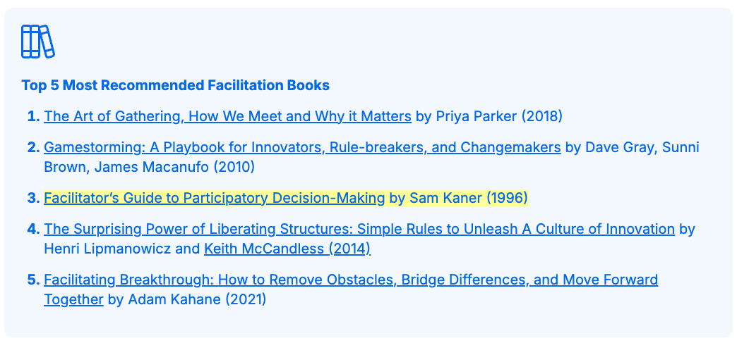 The Facilitator’s Guide for Participatory Decision-Making is in the top 3 most recommended facilitation books from the official ‘State of Facilitation 2026’ report by Session Lab